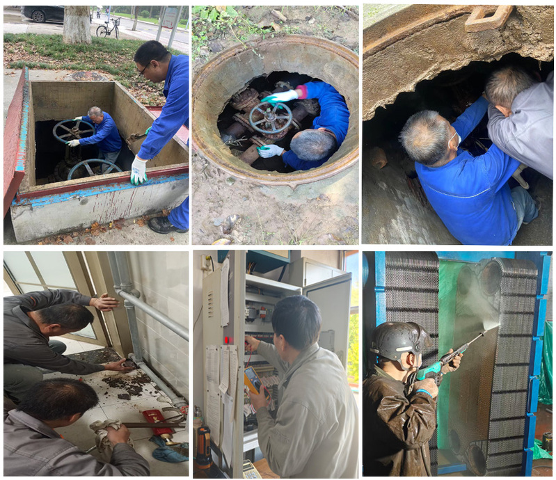 抢抓检修黄金期,在夏季制冷机组停运后,工作人员立即开始对东西校区5个换热站、7套设备、16台换热器、15台循环泵、12台补水泵等主要设备进行维护和检修。进入供暖准备期后,热力运行部在注水打压前对换热器进行了清洗,更换了老旧破损的管网、补水箱、补水泵和除污设备等设施。让每一个阀门、每一个螺丝,完成“全面体检”,确保“健康上岗”。